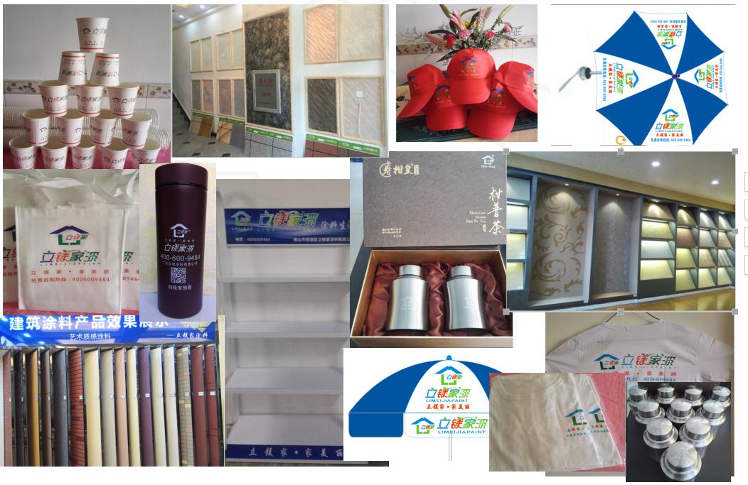 ③、廣告物料齊全,倍顯營(yíng)銷實(shí)力:全套60*60cm樣板、1:1(60*60cm)上墻比例的藝術(shù)涂料樣冊(cè)、32PV的A3液體壁材樣冊(cè)、A3、A4藝術(shù)涂料花式樣冊(cè)、真石漆、多彩仿石漆水包砂、陶彩砂、麻砂石、水包水、巖彩石、巖片漆、砂膠漆等系列質(zhì)感仿石板樣色卡、品牌貨架、優(yōu)質(zhì)廣告服、廣告帽、廣告?zhèn)?、太?yáng)傘、紙杯、禮品養(yǎng)生杯、手提袋……廣告物料,應(yīng)有盡有,倍顯營(yíng)銷實(shí)力!