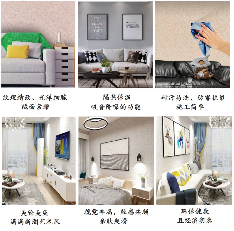 ? 超強(qiáng)耐用:墻面可承受超萬次濕擦,抗污耐刮;3mm厚涂層覆蓋細(xì)小裂縫,使用壽命達(dá)20年以上,性能優(yōu)于傳統(tǒng)乳膠漆及瓷磚。
