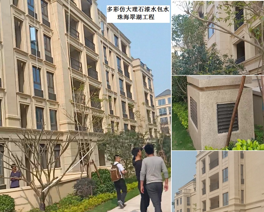 5. 水包水多彩漆耐候性、耐堿性、柔韌性、自潔性、抗紫外線性能佳,不易褪色,為高檔建筑物裝飾的上選之材。