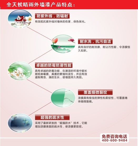全天候晴雨外墻漆產(chǎn)品特點(diǎn):