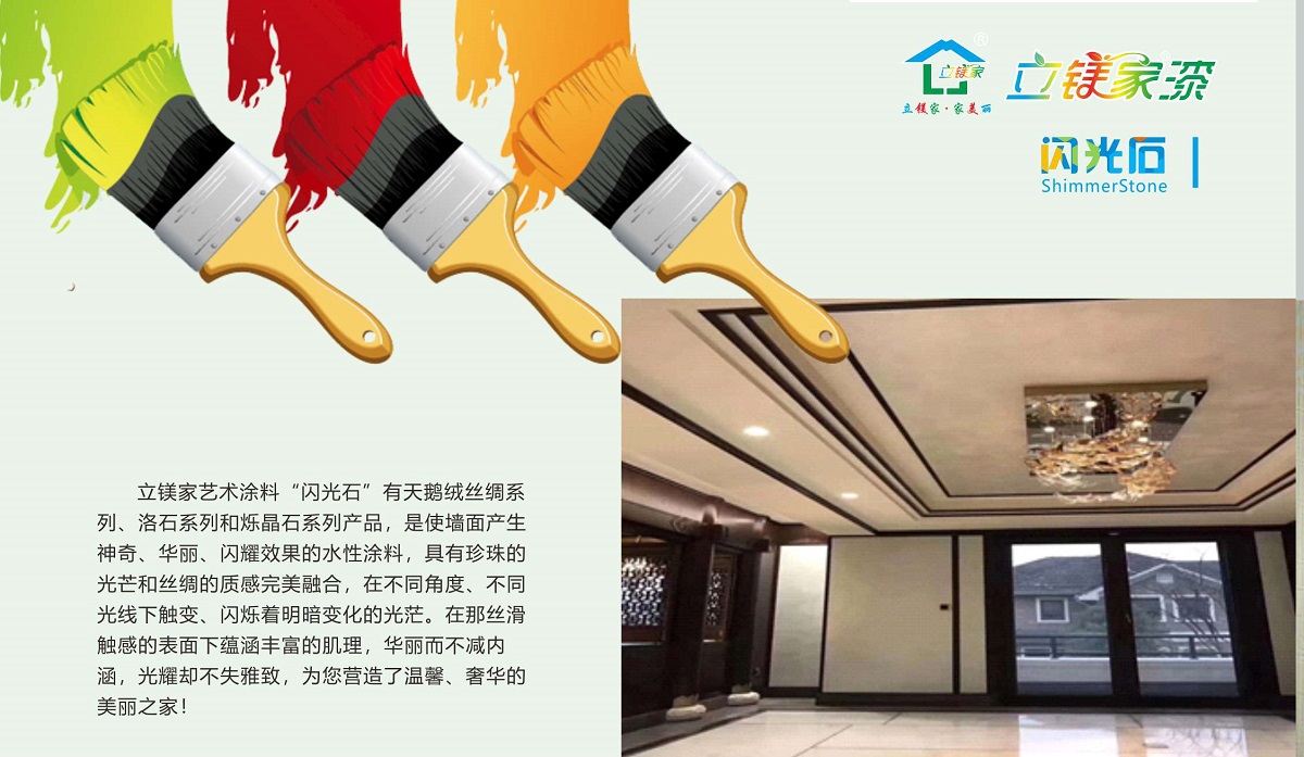 藝術(shù)涂料“閃光石漆”是將珍珠的光芒和絲綢的質(zhì)感完美融合,在不同角度、光線下觸變、閃爍變化的光茫環(huán)保涂料。