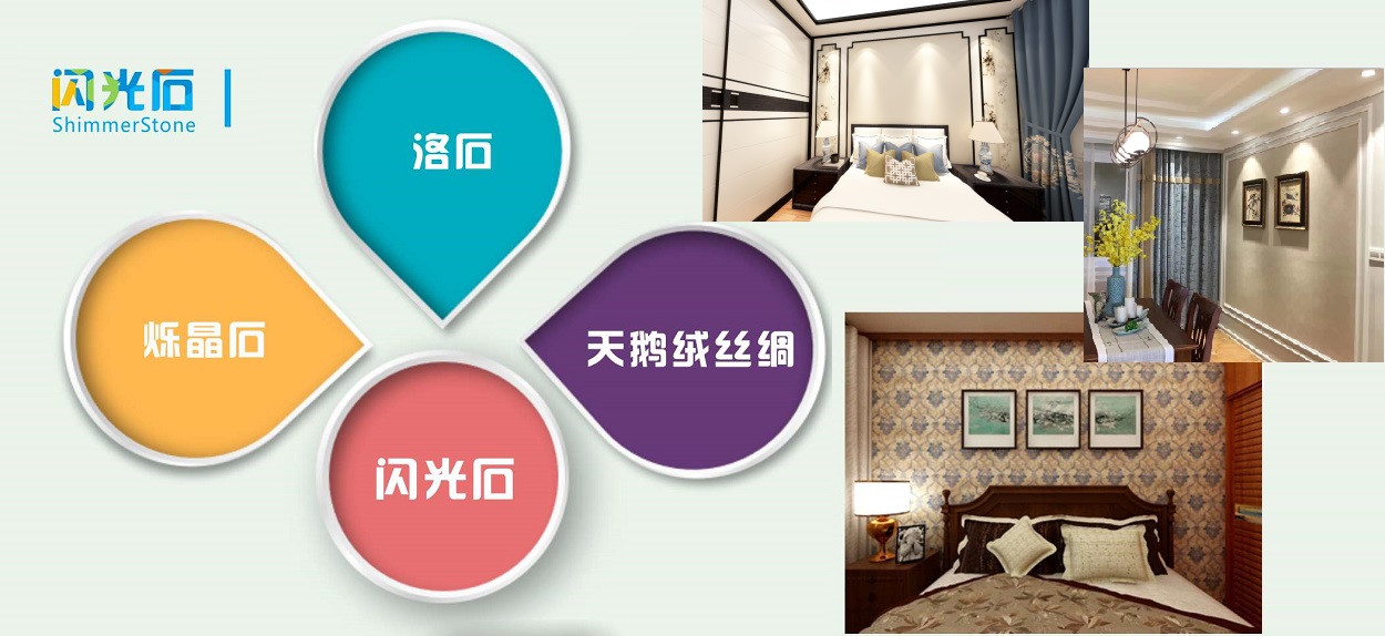 閃光石漆系列產(chǎn)品類型主要有:天鵝絨絲綢系列,洛石系列,爍晶石系列產(chǎn)品。
