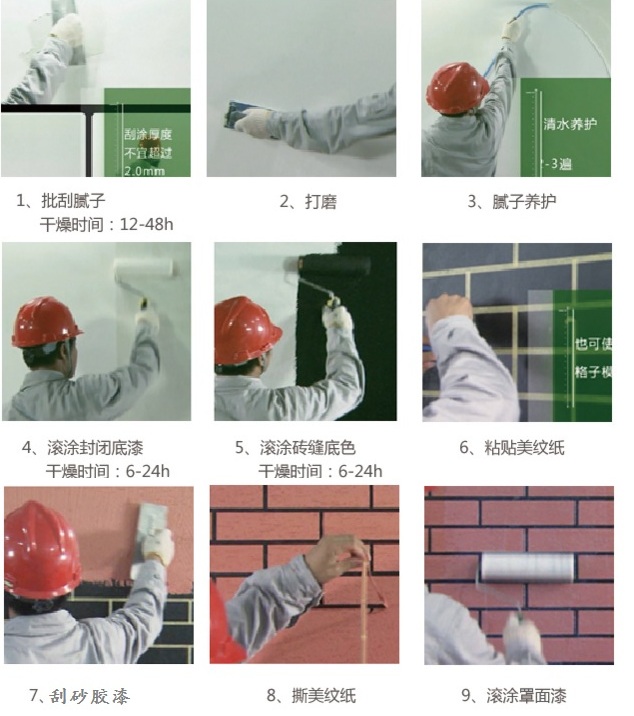 5、涂刷面積:理論涂刷面積1-3 Kg /㎡/遍,實(shí)際涂刷面積因墻體粗糙程度或因施工方法的不同會(huì)有所差異。