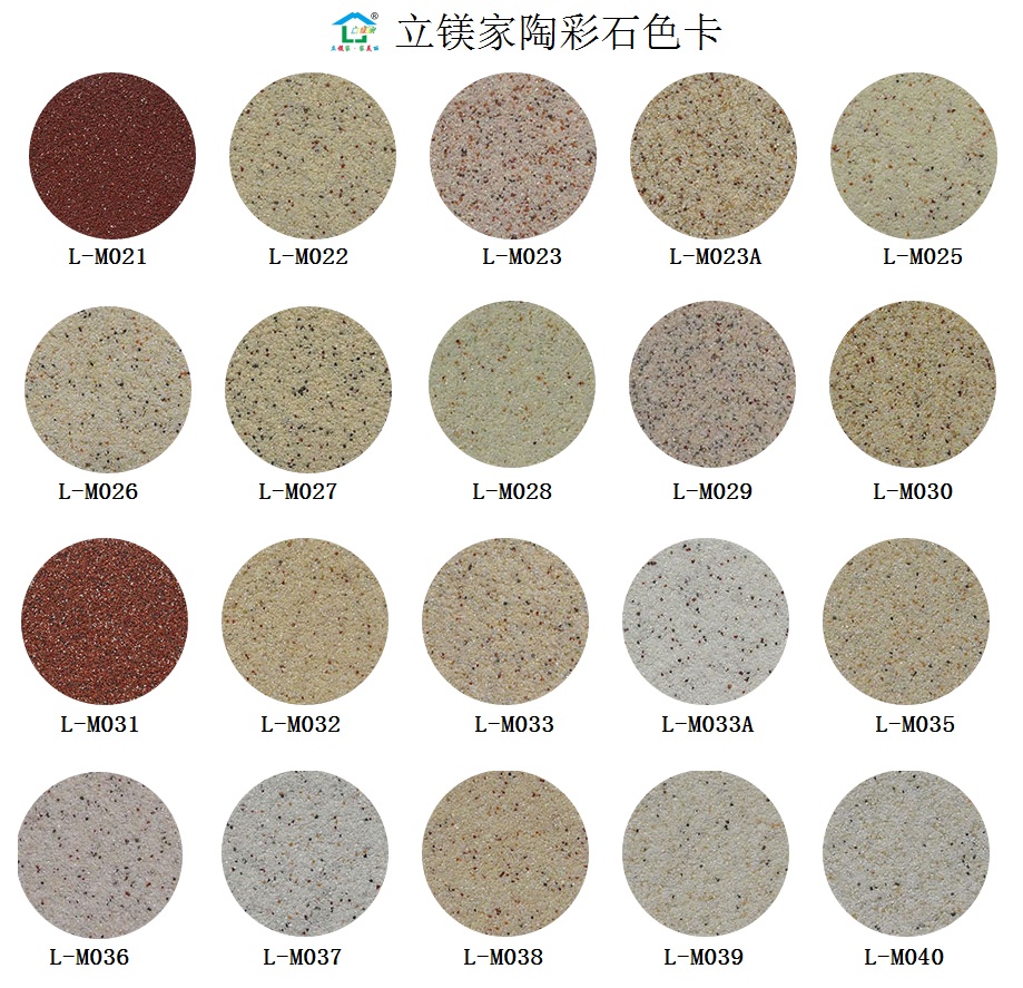:又稱陶彩石、陶晶石,是由經(jīng)過1000-2000攝氏度高溫?zé)频拇芍粕盀橹饕牧辖M成的生態(tài)藝術(shù)仿石效果裝飾材料。陶彩砂具有色彩鮮艷、如陶瓷般長壽;又因高溫?zé)频拇芍粕皟?nèi)部疏松而吸收更多乳液混合物形成表面緊密,使其具有超強(qiáng)硬度、柔韌性和吸附力,即超強(qiáng)耐候,又不懼回南天,還能覆蓋墻體細(xì)微裂紋;陶彩砂還博彩了彈性質(zhì)感涂料和仿石涂料的眾長,易施工、易修補(bǔ)、層次感強(qiáng)、裝飾性好,是墻面裝飾美學(xué)效果的又一次升華。