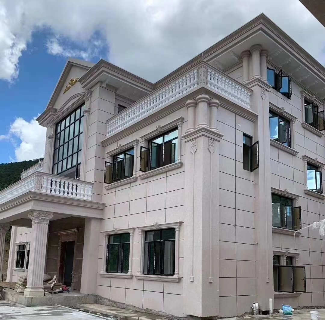墻面基層處理 →刮(抹)涂抗裂砂漿同時(shí)復(fù)合耐堿玻纖網(wǎng)格布 →刮(抹)涂柔性耐水膩?zhàn)?-3遍 →刷(噴)涂立鎂家專用封閉底漆1遍 →彈線、分格、貼膠帶→噴涂立鎂家彩砂真石漆中層漆1-2遍→噴涂立鎂家多彩仿石漆水包砂1-2遍→刷(噴/滾)立鎂家多彩仿石漆專用罩光漆2-3遍。
