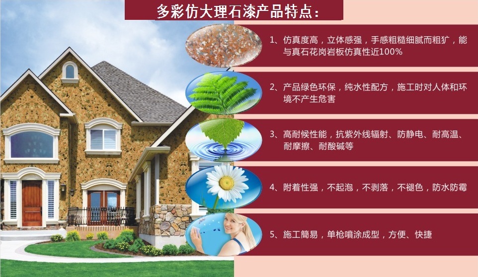 多彩仿大理石漆系列產(chǎn)品特點(diǎn):