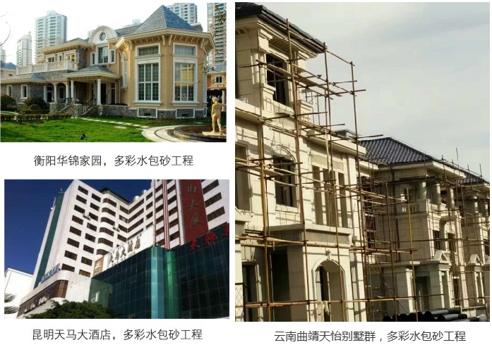 仿石漆之多彩仿大理石漆主要包含“多彩仿大理石漆水包水”、“多彩仿大理石漆水包砂”和“多彩仿大理石漆巖片漆”,主要是由多姿多彩、顆粒大小隨意的高分子液態(tài)膠狀共聚物組成的一種高檔水性環(huán)保涂料;液態(tài)花崗巖主材可以形成色彩、圖案、晶體斷面和立體質(zhì)感等效果媲美于天然花崗巖;且達(dá)到足夠的硬度,并賦予涂層高耐候的理化性能;健康環(huán)保、逼真效仿、高雅華貴、色彩多變、質(zhì)感強(qiáng)烈,仿石中的嬌嬌者。