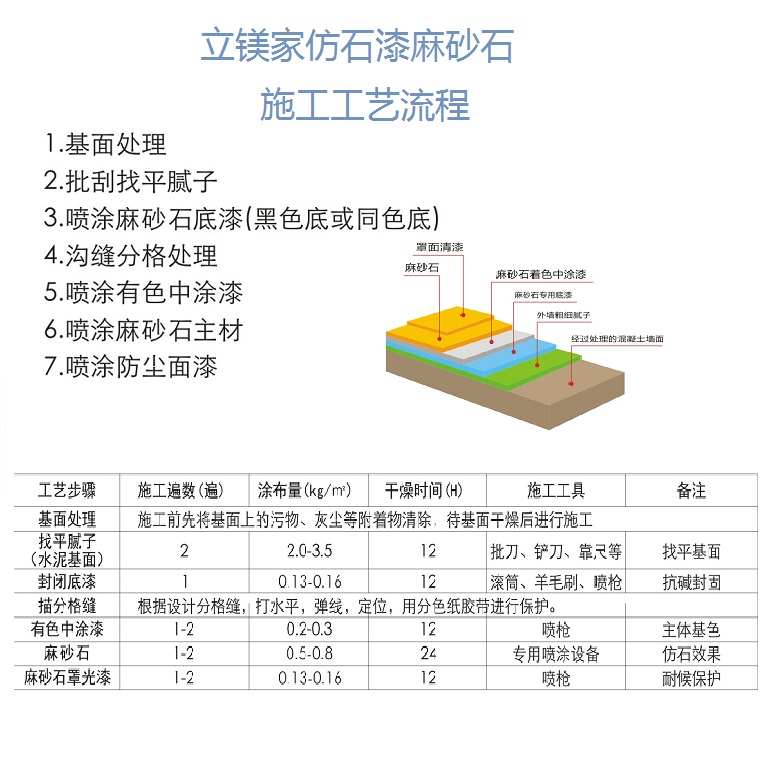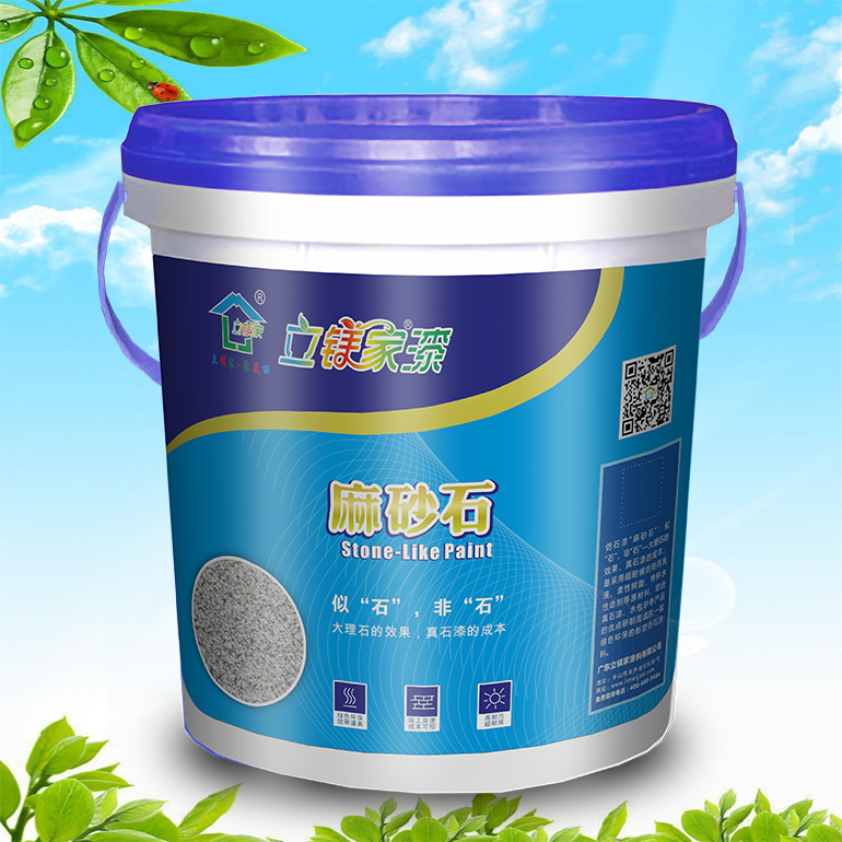 立鎂家多彩仿石漆 麻砂石是采用超耐候的硅丙乳液、柔性樹脂、特種水性助劑等原材料,結(jié)合真石漆、水包砂等產(chǎn)品的優(yōu)點研制而成的一款綠色環(huán)保的新型多彩仿石漆水包砂麻石面效果涂料。